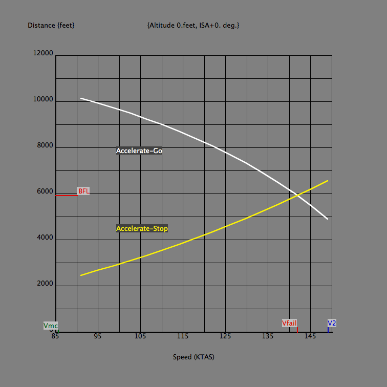 TAKEOFF PERFORMANCE {91000.lb., altitude 0.feet, ISA+0.deg.C.} ___________________ JAR25 Takeoff Field Length 5934. feet 115% Factored All-Eng.Dist. 5695. feet Balanced Field Length 5934. feet 2nd Segment Climb Gradient 5.82 % Takeoff CLmax 1.53 {trapezoidal ref.area} Takeoff Vstall 124. keas Takeoff Vmc 86. keas Takeoff Vfail 142. keas Takeoff V2 149. keas L/D at 2nd segment 12.87 {incl.windmill & asymm.} Takeoff Wing Loading 80. p.s.f.{trap.W/S} Takeoff Thrust/Weight 0.338 available static LANDING PERFORMANCE {75300.lb., altitude 0.feet, ISA+0.deg.C.} ___________________ JAR25 Landing Field Length 4612. feet Landing Distance (LFL*0.6) 2767. feet Landing Ground Roll 1435. feet Landing CLmax 1.99 {trapezoidal ref.area} Landing Vstall 99. keas Approach Speed 129. keas Approach L/D 6.34 {gear down}